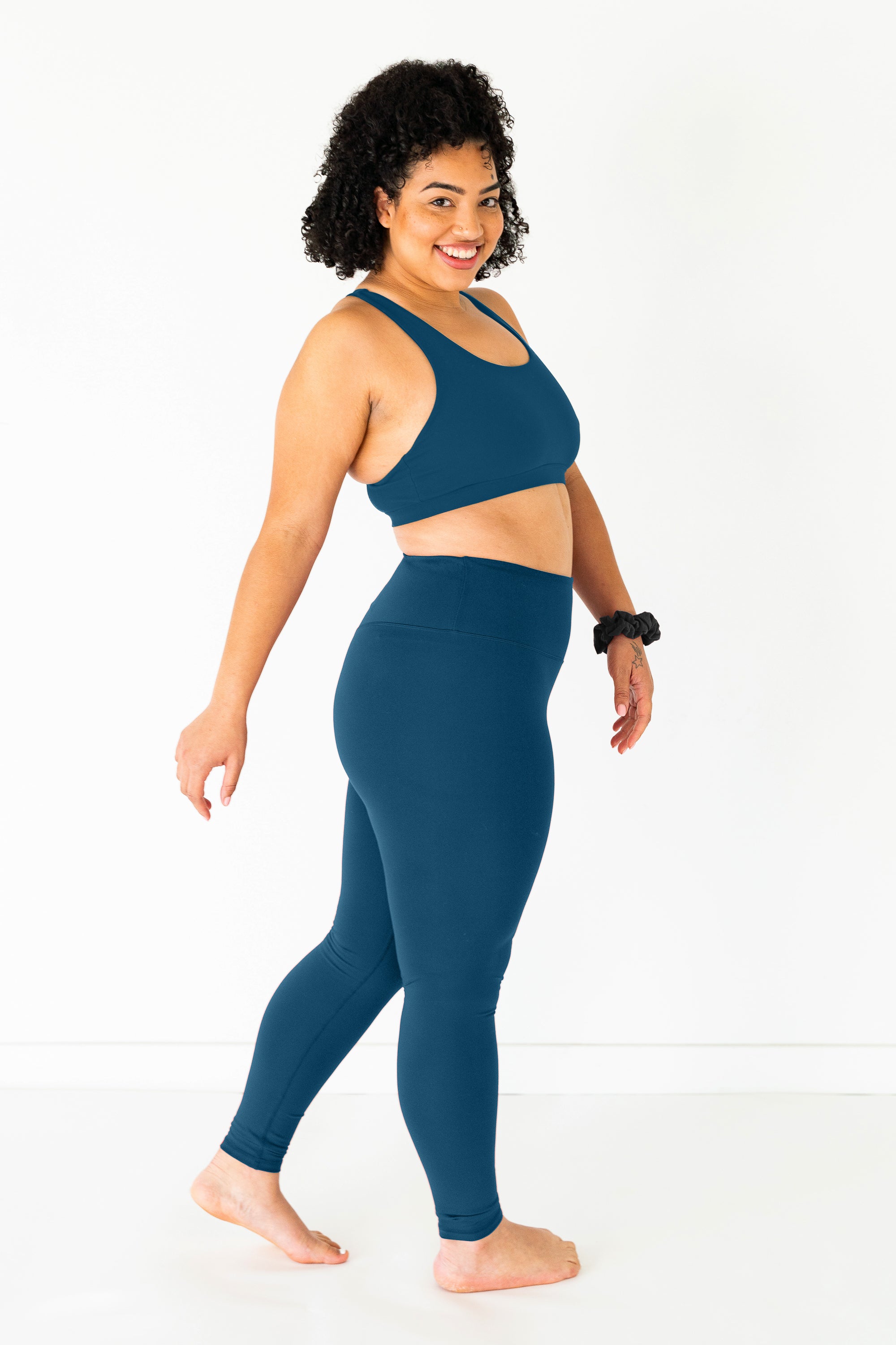 Dive into the serene depths of teal with the Luna Solid Pocket Legging in Deep Sea. Designed to sculpt and shape your silhouette, these leggings are as flattering as they are functional. Whether you’re striking a pose in the studio, running errands, or savoring a coffee break, they move effortlessly with you. Plus, the built-in waistband pocket deep enough to secure your phone keeps your essentials close at hand without compromising style.