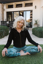 We LOVE this look for you! Step into true artistry with the Deep Sea Geode Printed Legging. Featuring a mesmerizing swirl of blues, teals, and golden accents, this design brings the beauty of the ocean’s depths to your every move. Whether you’re striking a pose or chasing your to-do list, these leggings are equal parts bold statement and effortless functionality.
